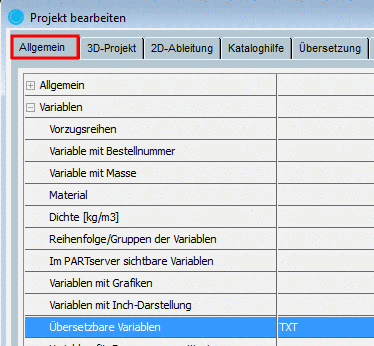 Die zu übersetzenden Variablen müssen in PARTproject auf der Registerseite Allgemein unter Übersetzbare Variablen deklariert sein.