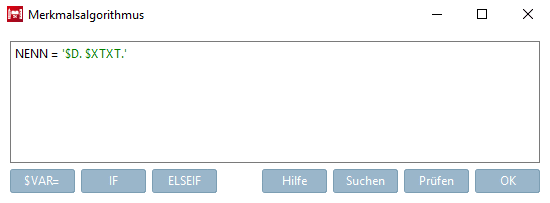 Hinweis Bei Verwendung einer Variablen in der Form $VARIABLENNAME. wird immer ihr interner Wert zurückgegeben.[a] Soll aber beispielsweise in der Zeilenbeschreibung, im Datenblatt, der 2D-Ableitung), etc., der sichtbare, übersetzte Wert benutzt werden, können Sie alternativ zu "TRANSLATE" auch die Funktion "$VARIABLENNAME(SRC=VALDESC)." einsetzen.