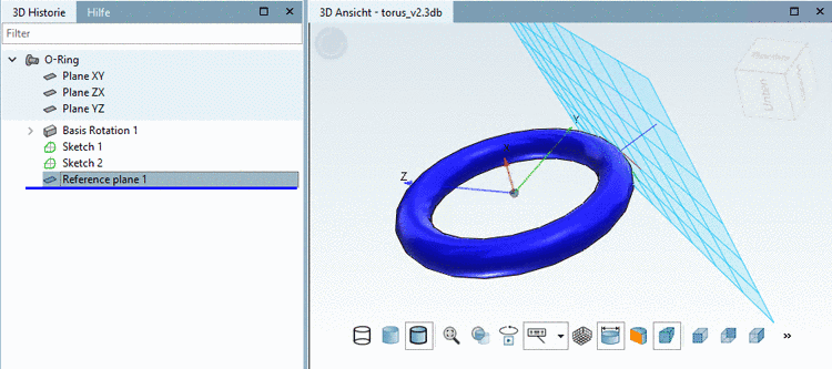 Setzen Sie direkt in der 3D Ansicht tangentiale Ebenen auf gerundeten Flächen (extrudierter oder rotierter Kreis / Kreisbogen).