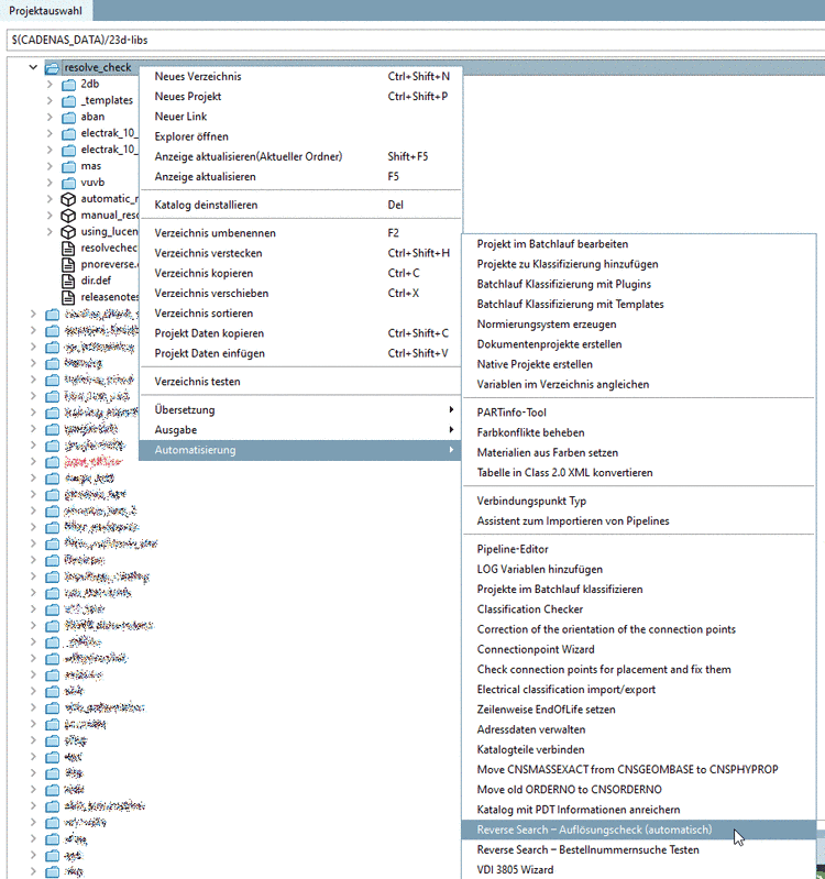 Rechtsklick auf einen Katalog oder Verzeichnis -> Automatisierung -> Auflösungscheck