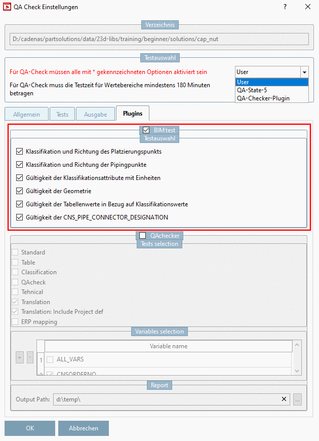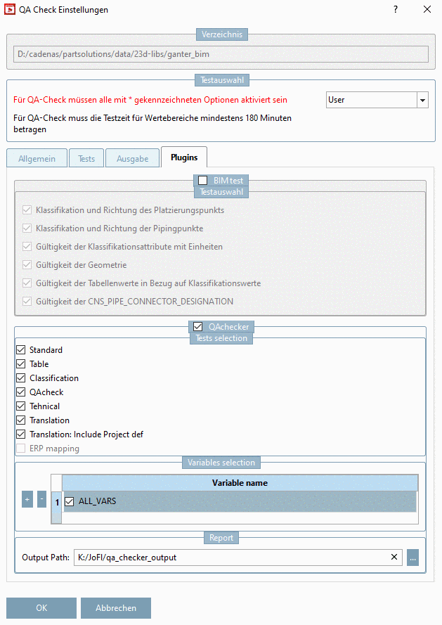 Auf der Registerseite Allgemein müssen folgende Punkte gesetzt sein, der Rest kann für den reinen BIM Check deaktiviert bleiben.