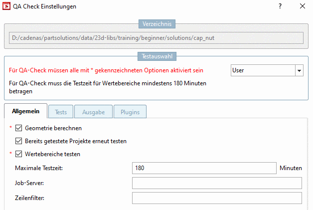 Aktivieren Sie den Dialogbereich QAchecker und dann die gewünschten Optionen.
