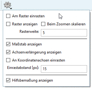 Am Raster einrasten: Wird beispielsweise eine Linie gezogen, wird diese automatisch auf Rasterlinien platziert. Eine Platzierung zwischen Rasterlinien kann nur erreicht werden, wenn die Option ausgeschaltet ist.