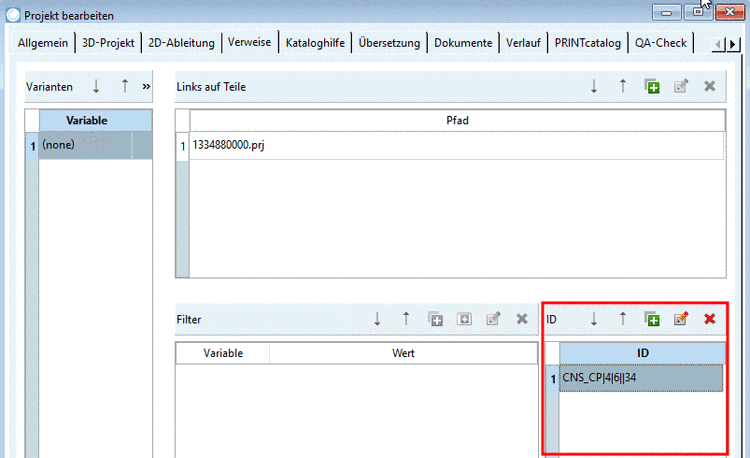 Der Dialogbereich ID wird beispielsweise für die Elektroteile-Klassifikation benötigt.