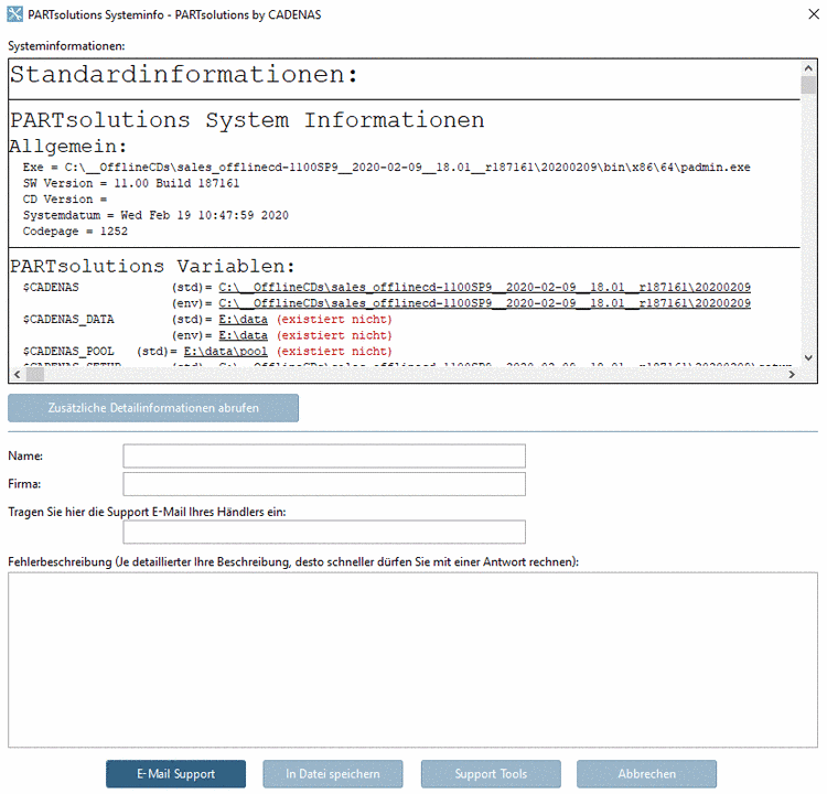 werden alle Support-relevanten Informationen angezeigt.