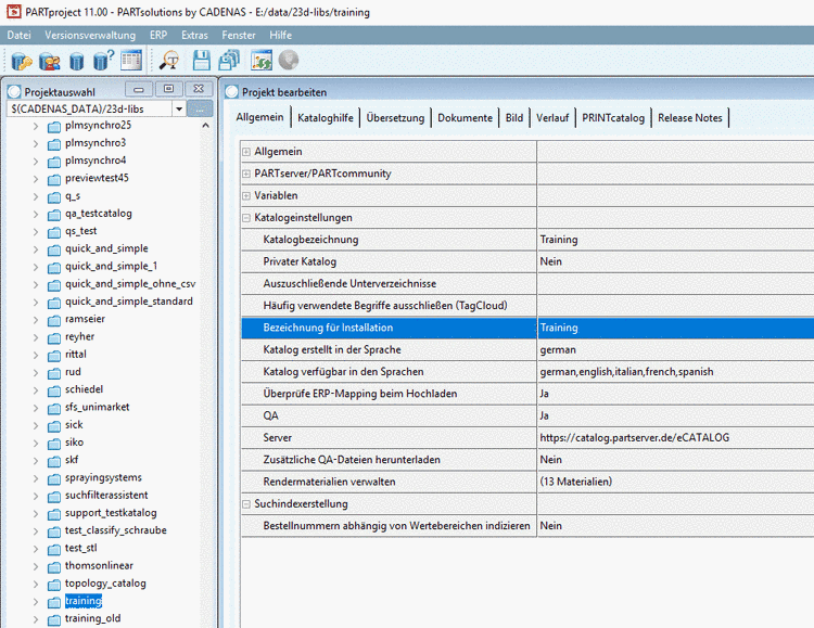 Es werden alle Suchteile des eingestellten Verzeichnisses aufgelistet. Mit Klick auf ein