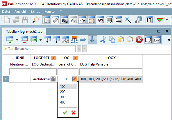 Das bisher "LOG 350" benannte Level wurde nur in wenigen Regionen (FR/DE) verwendet und wird nicht mehr im CADENAS Standard verwendet.