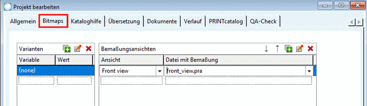 Die Registerseite Bitmaps erscheint nur beim Projekttyp Ohne Geometrie.