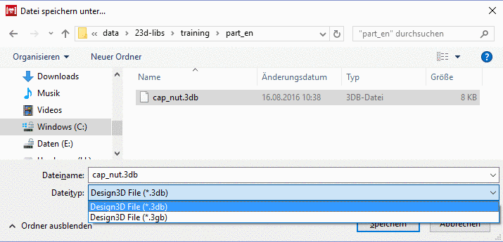 bzw. der Menübefehl Datei -> Speichern / Speichern unter... öffnen das Fenster Datei speichern unter....