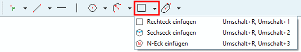 Klicken Sie auf den gewünschten Mittelpunkt (nicht sichtbar!) ziehen Sie mit dem Cursor das N-Eck auf.