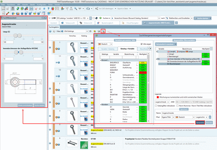 Suchfilterassistent (innerhalb von PARTdataManager manuell erstellt)