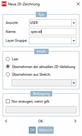 Wählen Sie bei Inhalt die Option Übernehmen der aktuellen 2D-Ableitung und bestätigen Sie abschließend mit .