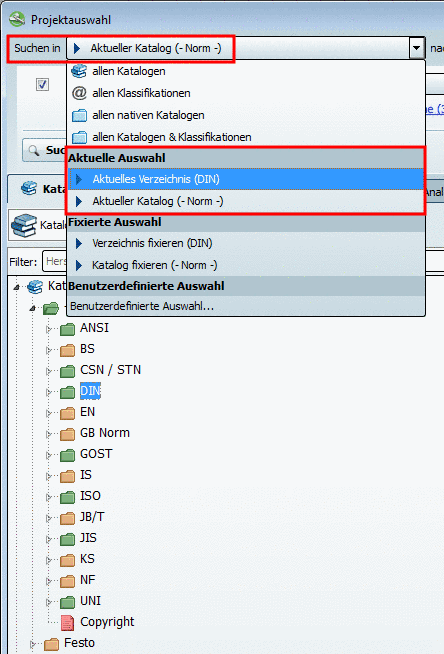 Aufruf auf Projektebene auf allen Registerseiten (Kataloge, Klassen, Suche, Favoriten, Verlauf, Analysen)