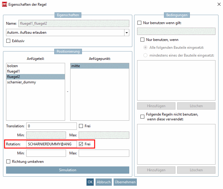 Nun werden Regeln definiert, die einen korrekten Aufbau des Assemblys gewährleisten.