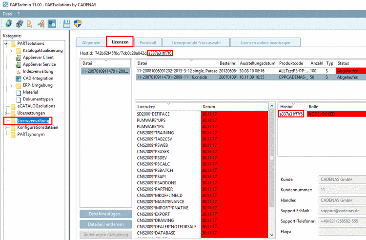 Rufen Sie über PARTadmin -> Kategorie Lizenzverwaltung -> Clients und/oder FLM-Server die Registerseite Lizenzen auf. Überprüfen Sie das Ablaufdatum. Abgelaufene Lizenzen erkennen Sie an der roten Hintergrundfarbe.