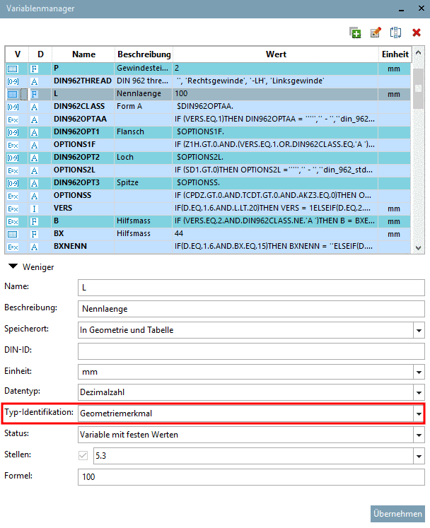 Die Typ-Identifikation wird in PARTdesigner im Variablenmanager gesetzt.
