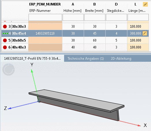 Entsprechend der Deklaration ist die Darstellung im PARTdataManager unterschiedlich.