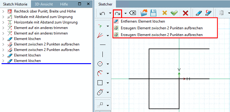 Entfernt den zuletzt erzeugten Konstruktionsschritt aus der Sketch Historie bzw. aus der Zeichnung im Sketcher.
