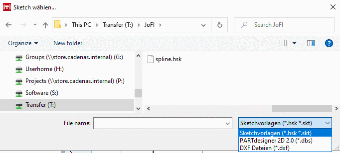 öffnet sich das gleichnamige Dialogfenster.Sie können Sketchvorlagen (*.hsk) und 2D-Zeichnungen (*.2db) abspeichern und später mit