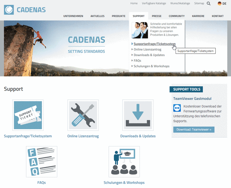 Damit Ihnen dieser Service zur Verfügung steht, registrieren Sie sich bitte unter https://www.cadenas.de/support/de/ticketsystem -> Button PARTconcept (PARTconcept Login-Seite).