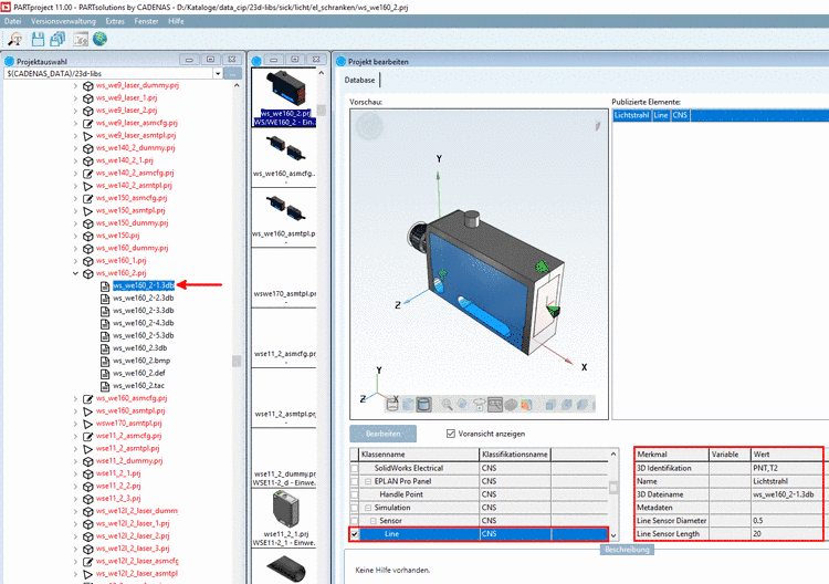 Im Folgenden wird anhand eines Beispiels gezeigt, wie Sie einen Sensor klassifizieren und im Mechatronics Concept Designer die Klassifikation überprüfen.