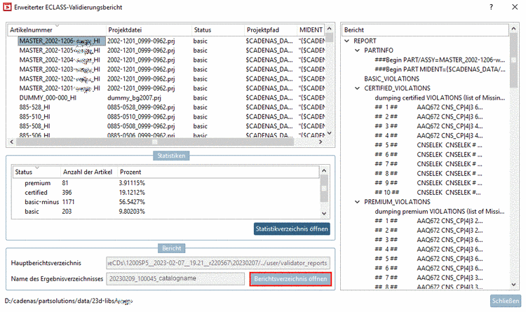 statistics.xlsx. Nach Klick auf ist diese bereits selektiert.Sie können das aktuelle Berichtsverzeichnis direkt aus dem Dialog Erweiterter ECLASS-Validierungsbericht öffnen.