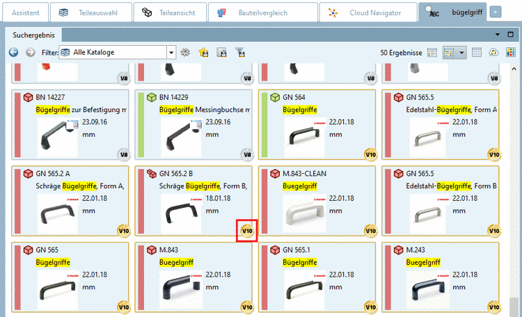 [43] "Suchen nach Einzelteilen" empfiehlt sich, wenn nach konkreten Ausprägungen gesucht wird. Für Details siehe Abschnitt 3.1.6.3, „Suche nach Einzelteilen | Teilefamilien und Einzelteilen“.