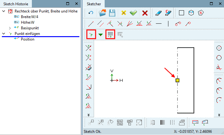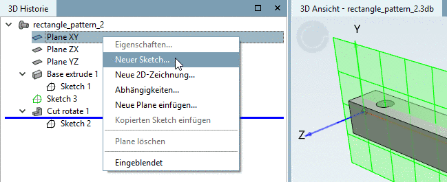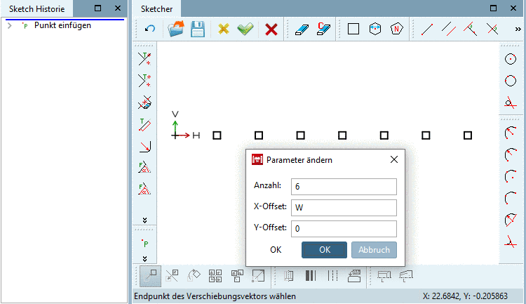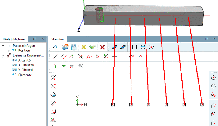 Basispunkt befindet sich als Musterursprung im anderen Sketch.Schließen Sie den Sketcher mittels Klick auf den Button Änderungen übernehmen