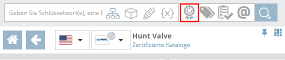 Bei Katalogen mit Siegel wird ein entsprechendes Icon angezeigt.