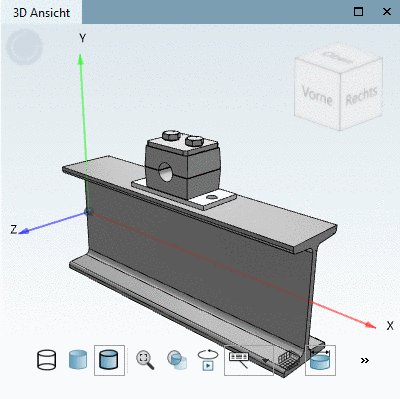 Im folgenden Beispiel soll auf einen Träger (Profil) [Einzelteil] eine Rohrschelle [Baugruppe] gesetzt werden.