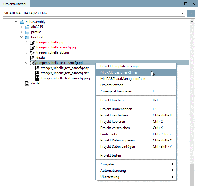 training/subassembly/finishedneben der Originalkonfigurationtraeger_schelle_asmcfg.prjeine neue eigene an.Klicken Sie hierzu unter