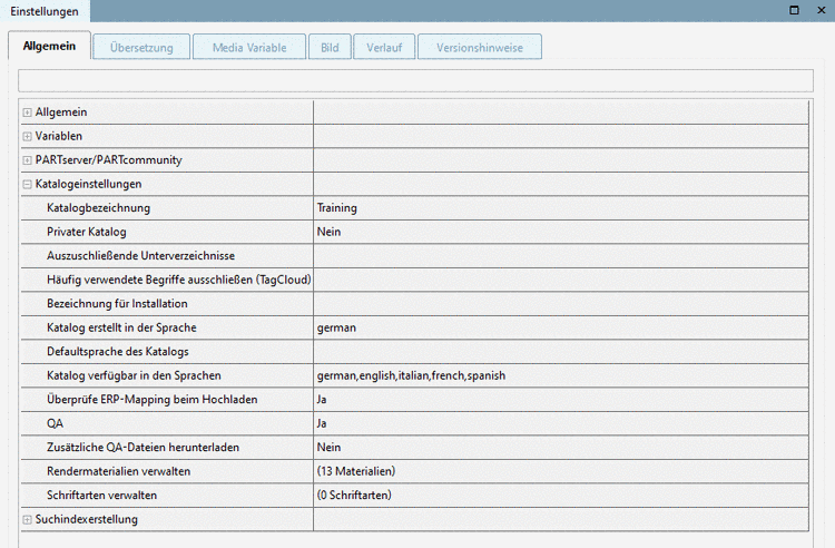 Rufen Sie in PARTproject auf Katalogebene die Registerseite Allgemein auf.