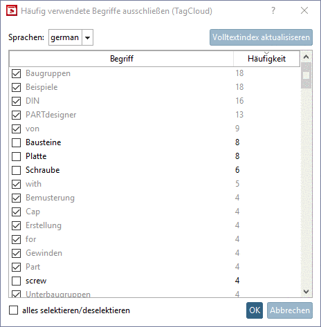 Das Ergebnis ist anschließend im PARTdataManager im Dockingfenster Details unter TagCloud nochmals visuell zu überprüfen.