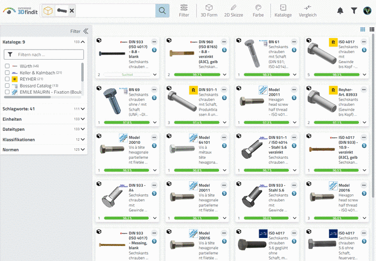 Dies kann a) zum Ausschluss von Teilen führen (wenn die Features abweichen) oder b) zu einem höheren Ranking (wenn die Grundform nicht besonders ähnlich ist, aber die geometrischen Merkmale sehr ähnlich sind).