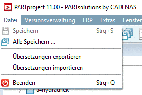 Alle speichern ...: Alle geänderten Projektdateien der aktuellen PARTproject-Sitzung werden gespeichert.