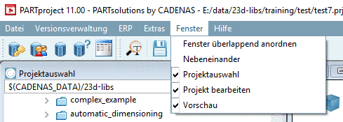 Fenster überlappend anordnen: Die Anordnung der einzelnen Dialogbereiche erfolgt "karteikartenmäßig".