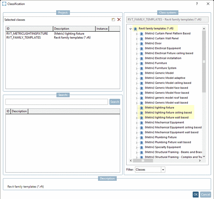 Wählen Sie zusätzlich eines der drei Templates (Metric) lighting fixture, (Metric) lighting fixture ceiling based, (Metric) lighting fixture wall based.