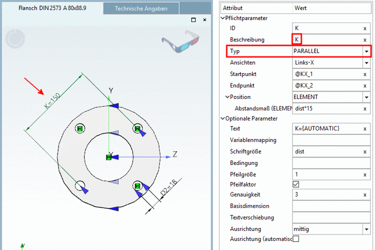 Nutzen Sie das Parallelmaß, wenn die Messlinie nicht orthogonal zu dem Koordinatensystem liegt.