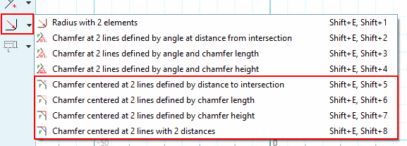 Fase mittig an 2 Linien über Abstand zu Schnittpunkt [Chamfer centered at 2 lines defined by distance to intersection]