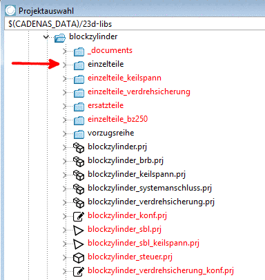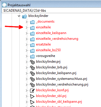 Im PARTproject selbst wird das Verzeichnis rot gekennzeichnet.