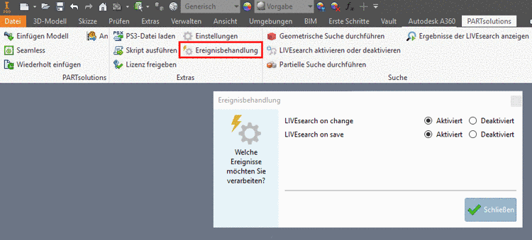 • Ereignisbehandlung: PARTsolutions Einstellungen für die Verarbeitung von Systemereignissen aufrufen (MN_eventmgr_DisplayText)