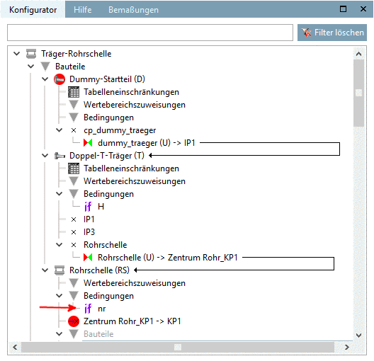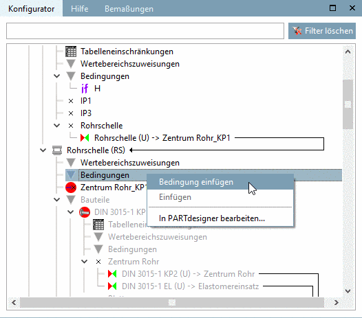 Klicken Sie beim Bauteil "Rohrschelle" (RS) unter Bedingungen auf den Kontextmenübefehl Bedingung einfügen.