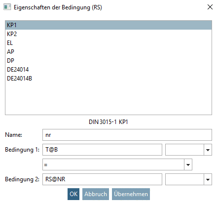 Wählen Sie im oberen Bereich dasjenige Bauteil, auf das die Bedingung angewendet werden soll (hier KP1).