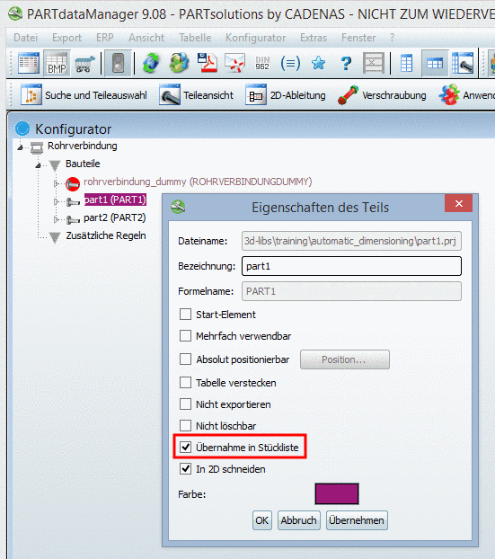 [a] Siehe Abschnitt 4.17.1, „Dimensions-Merkmal pinnen an/aus / plinkcommon.cfg -> Block [PARTdataManager] -> Key "LockDimRange"“ in PARTsolutions - Handbuch für Administration.