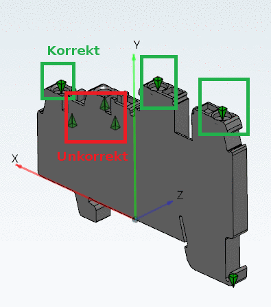 Anfügepunkte werden in 3D-Ansichten als kleine, grüne Pyramiden dargestellt.