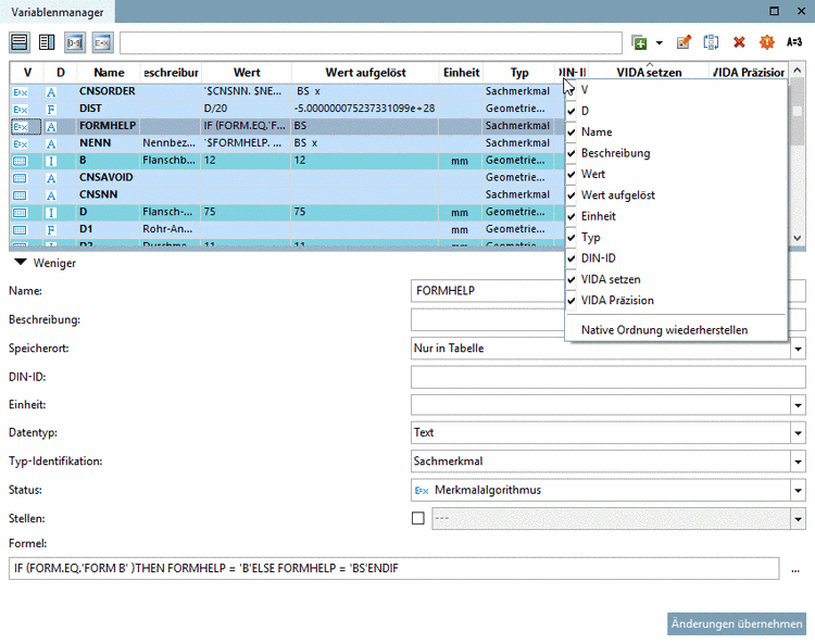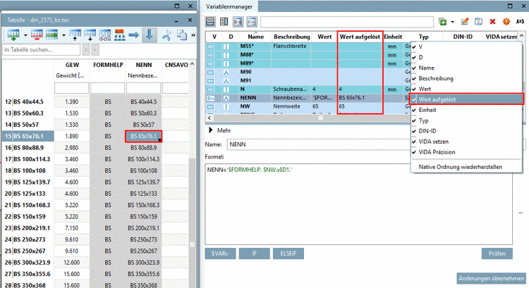 Hinweis In der Tabelle werden in der entsprechenden Spalte immer die aufgelösten Werte angezeigt, im Variablenmanager unter Wert jedoch der nicht aufgelöste.
