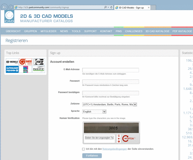 -> Sie werden auf die B2B Registrieren Internetseite geleitet, wo Sie Ihren Account erstellen können. (Der Account ist gültig für alle Funktionen auf dem Portal.)