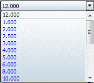 gekennzeichnet.Im aufgeklappten Listenfeld sehen Sie einen schwarzen Wert (den eingestellten) und die übrigen in blauer Schriftfarbe.