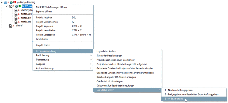 Ausgangslage ist ein Projekt mit QA-Status 8.
