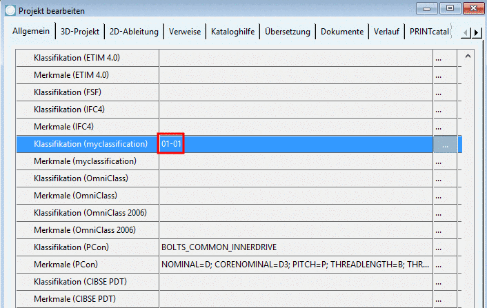 Wählen Sie die Klasse innerhalb Ihrer Klassifikation, in welche das gewählte Bauteil aufgenommen werden soll.